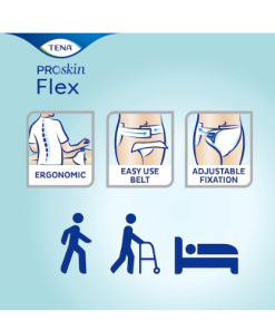 TENA ProSkin Flex features an integrated fastening belt which is designed for easier and more ergonomic product change.