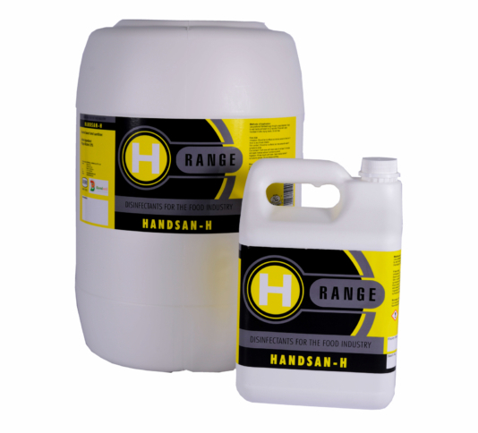 This is a thick, clear colourless liquid for use in soap dispensers. It also contains anti-bacterial agents and alcohol and is for use in hospitals, veterinary clinics, food factories and kitchens. Hand San -H is used as a sanitiser after hand washing.