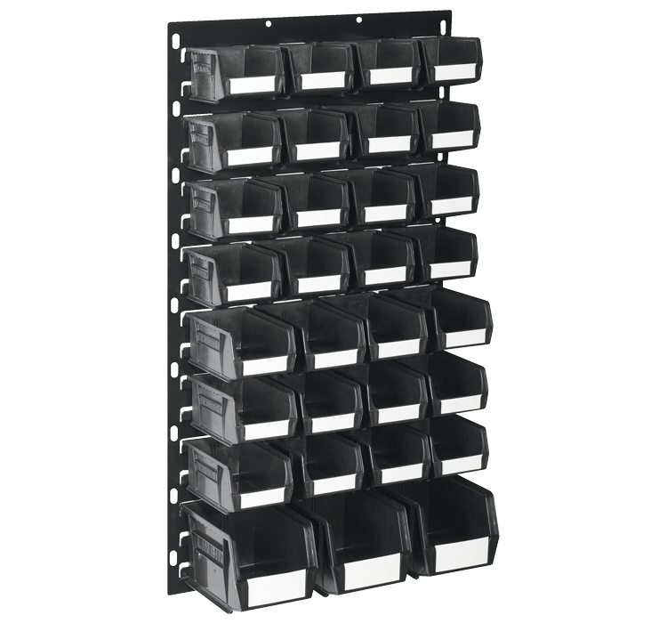 • product_details: 500 x 900 black panel complete with 31 black Linbin ® storage bins