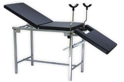 YNAE COUCH, 3 SECTIONS,WITH LITHOTOMY POLES & STRAPS.