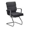 Padded highback chair made with black bonded leather comes with torison knee tilt mechanism. Chrome spider base, chrome arms with leather cover.