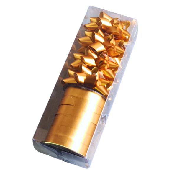 What’s in the box? 5m Gold Poly Ribbon (10mm) 4 x 50mm Star Bows