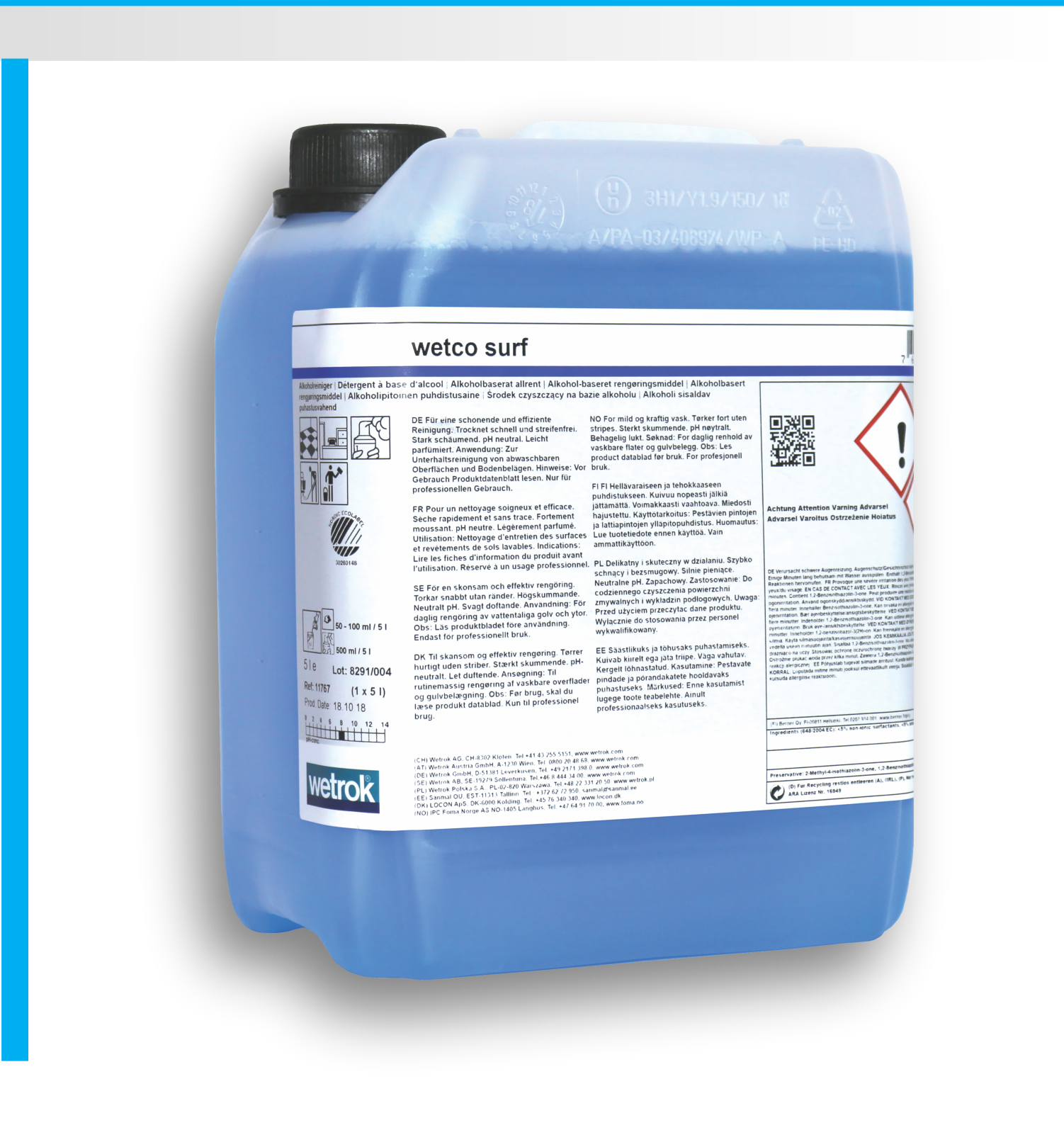 - Wetco Surf contains alcohol for fast drying without streaks.