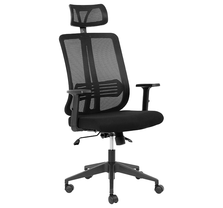 Lenny High Back Chair offers ergonomic support with an Infinite Lock Synchro Mechanism for adjustable recline. It has a PU base . Height-adjustable arms and headrest, a breathable black mesh back, and an upholstered fabric seat provide all-day comfort.