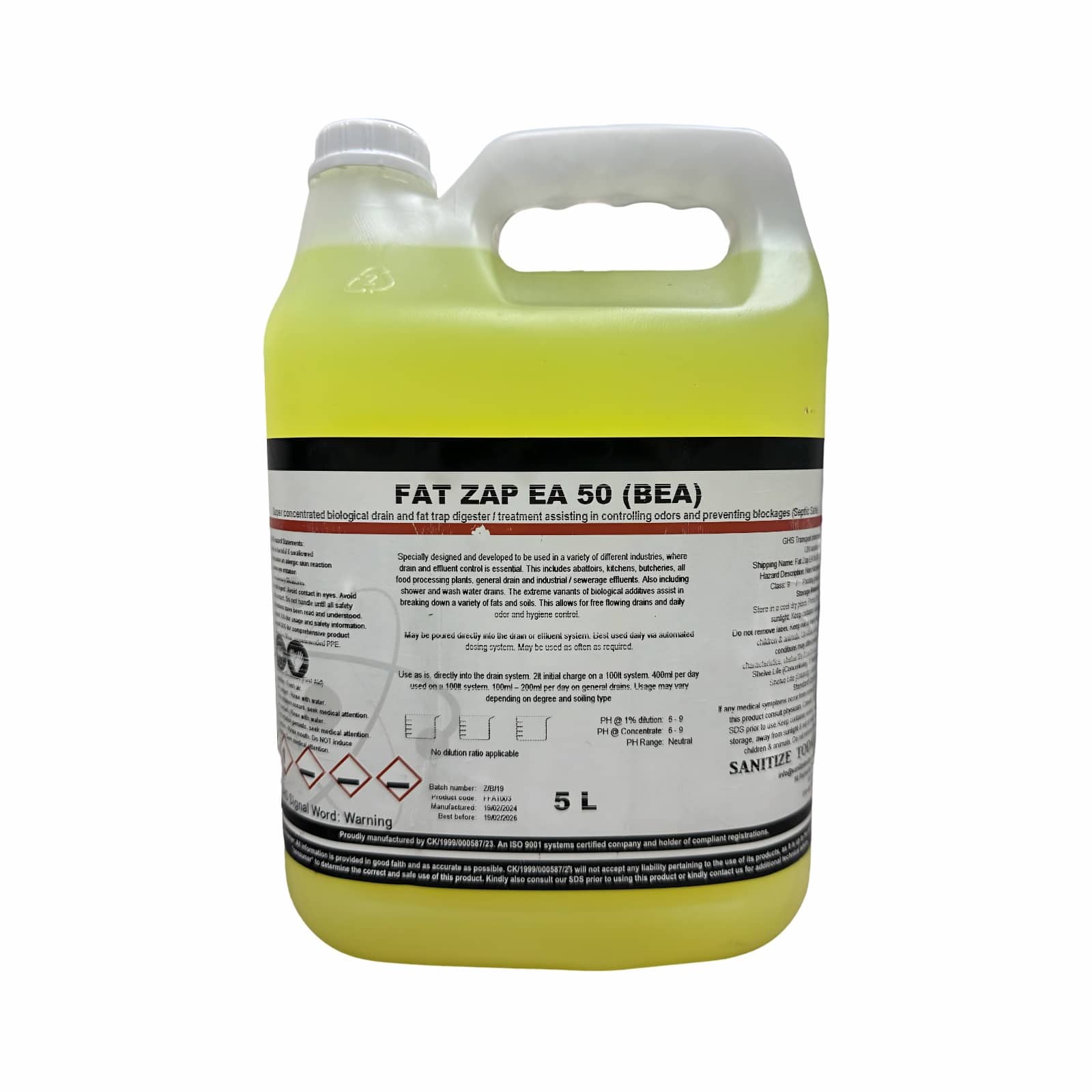 Effortlessly sanitize with Fat Zap BEA 50 5L! Experience powerful germ-fighting action in a convenient 5-liter size. Safeguard your space today with this trusted sanitizing solution.