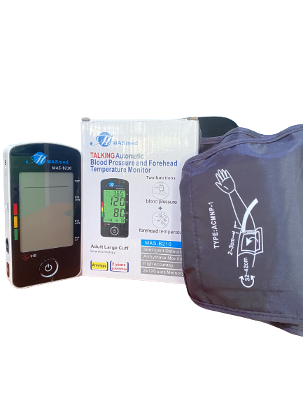 Digital BP monitor and infrared thermometer 2 in one machine with English talking function.