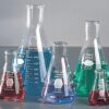 **Erlenmeyer Flasks, Narrow Neck 25ml** The slanted sides and narrow neck of this flask allow the contents of the flask to be mixed by swirling, without risk of spillage, making them suitable for titrations by placing it under the buret and adding solvent and the indicator in the Erlenmeyer flask. * Suitable for titrations * They are made of Borosilicate glass Other Names: Conical Flask Also available in: 50ml, 100ml, 250ml, 500ml, 1000ml, 2000ml Erlenmeyer Flasks Narrow Neck 25 ml