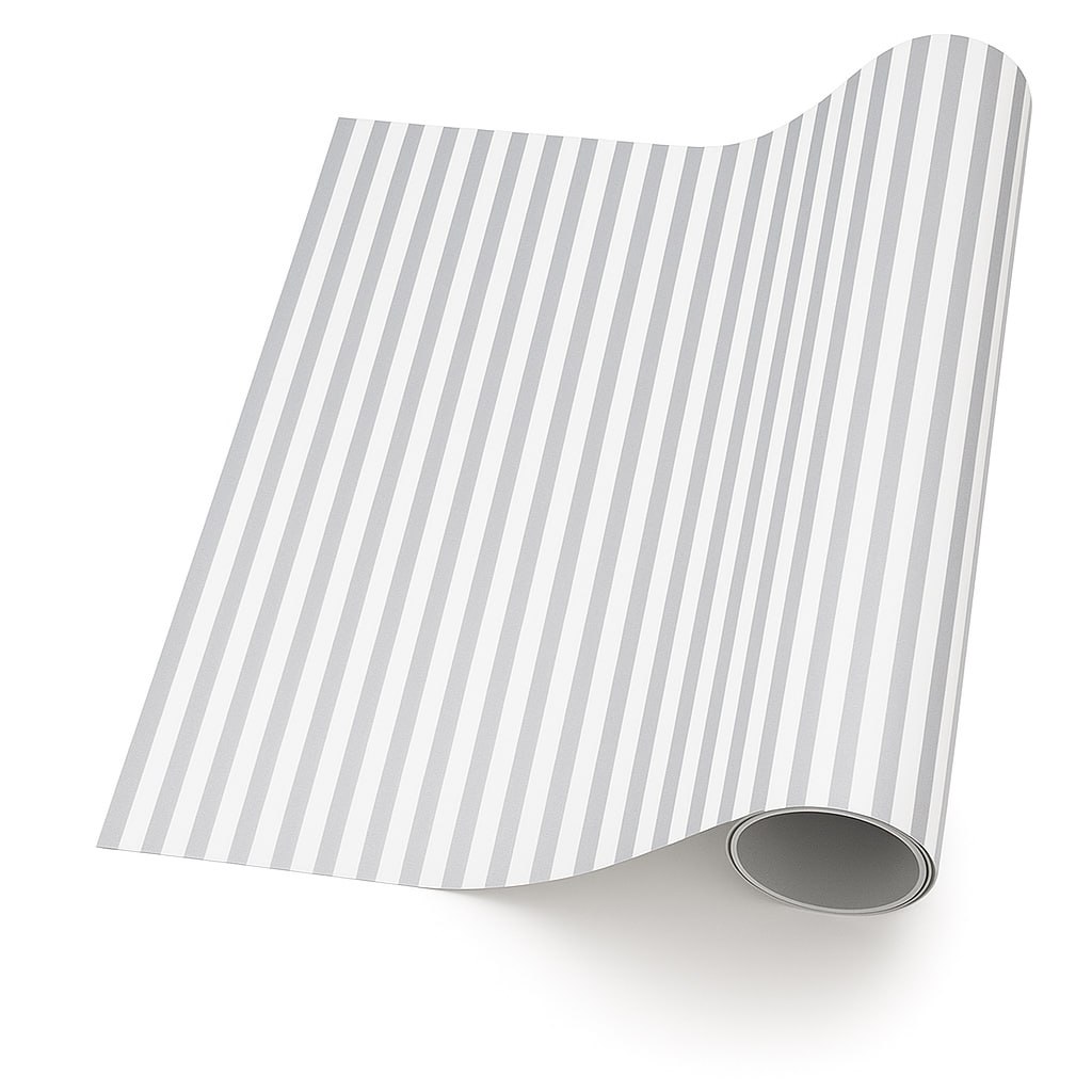 Thin Stripe – Silver on Pearl (5m x 50cm)